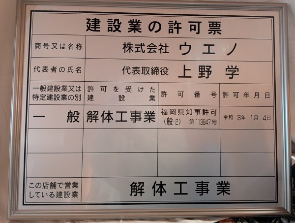 株式会社ウエノは、福岡県久留米市田主丸町にある建物解体をメインに行っている会社です。